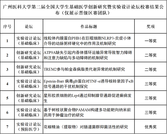 第二届全国大学生基础医学创新研究暨实验设计论坛校赛结果