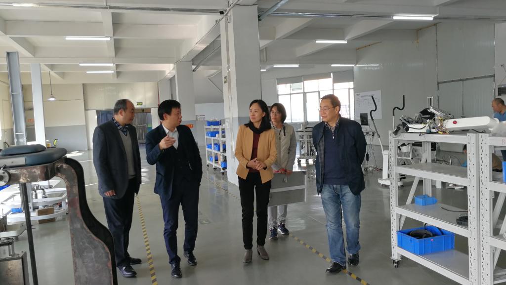 马宁芳院长和各位老师在参观过程中详细聆听了公司高层管理对力迈德公司产品及发展定位的介绍。充分了解了力迈德手术器械、康复机器人的产品以及迈德医疗家具体验中心,各位老师都留下了深刻印象。