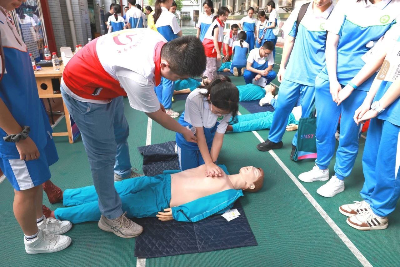 为让同学们更好地理解急救的重要性,科普团队通过系统讲解心搏骤停的识别要点、黄金救援时间、CPR操作流程等专业知识,结合真实的急救案例,现场演示了心肺复苏的标准步骤。特别针对胸外按压深度、频率及人工呼吸技巧等关键细节进行了细致的分解教学。