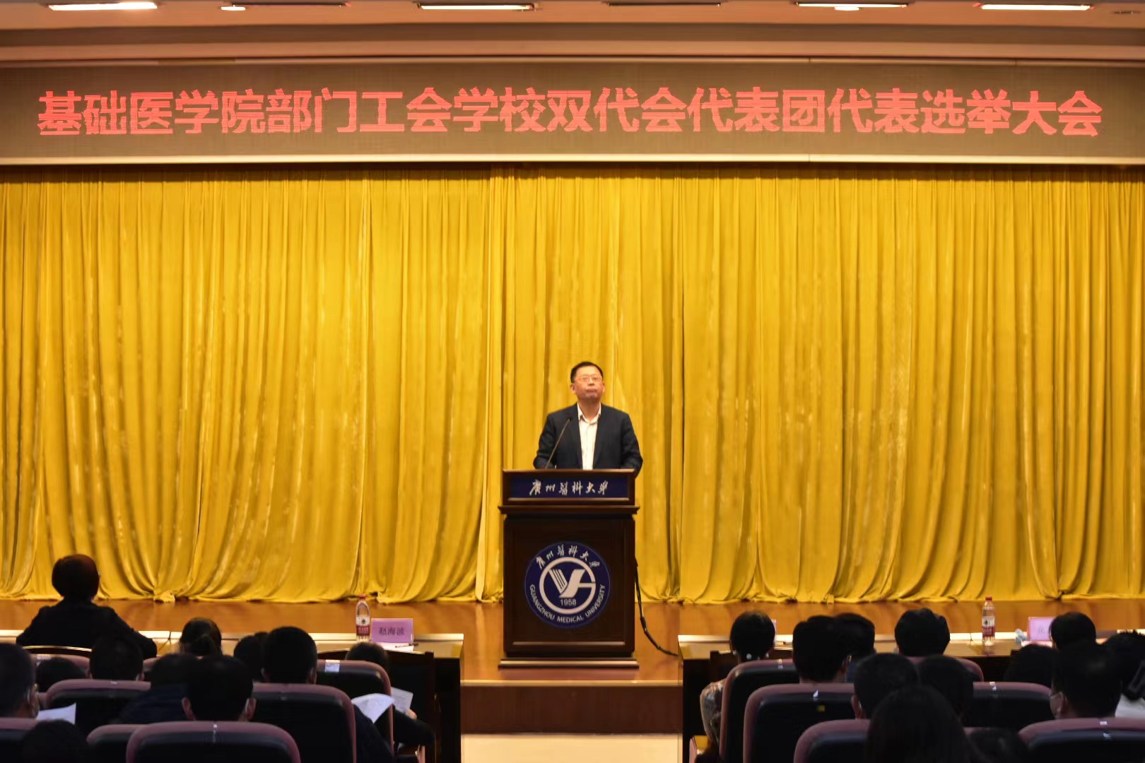 新一届“双代会”是继广医第二次党代会后,学校进入“双一流”建设新时期召开的一次重要会议。各位代表要牢固树立主人翁意识,以一往无前的奋斗姿态和永不懈怠的精神状态,积极为学校改革发展建言献策,奋力推进学校各项事业高质量发展。