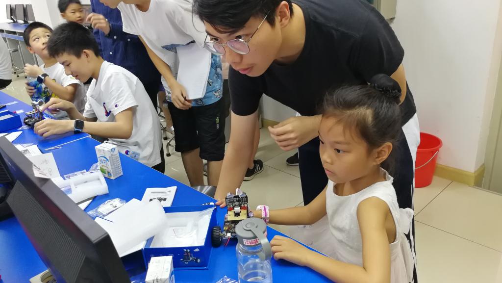 科普活动中,小朋友们首先观看了无人机、机器人表演视频,以了解人工智能的基本概念。然后在十名余志愿者课的带领下,一边学习、一边动手编程、一边动手组装小车,实现了完成一定功能的小车组合。期间小朋友们积极提问,乐于动手操作,凸显出二十一世纪现代化教育下新时代学生的创新精神。科普活动过程中,