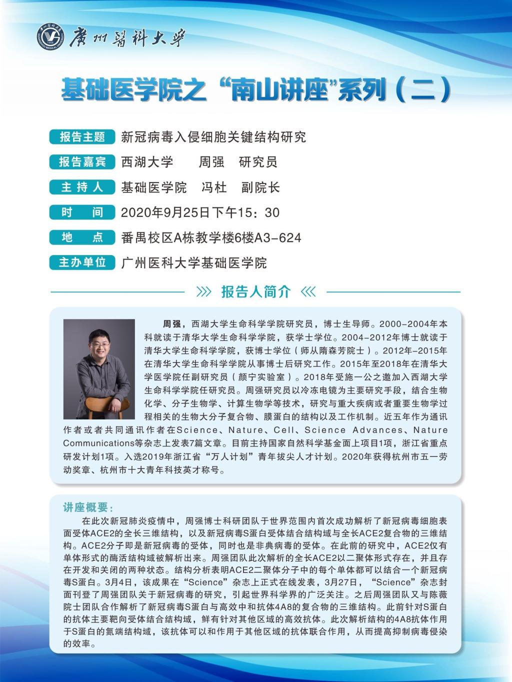 学术讲座--新冠病毒入侵细胞关键结构研究