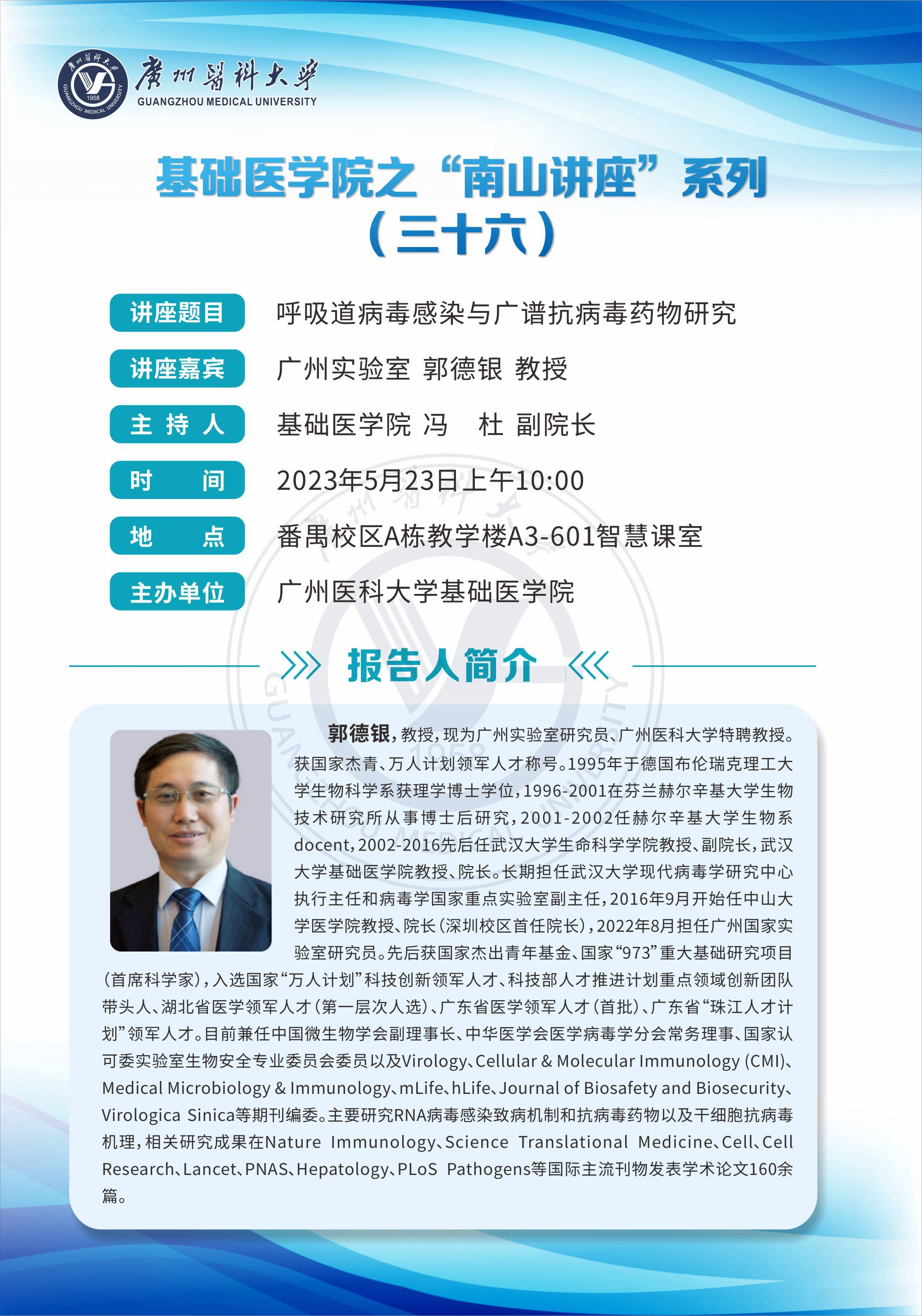 学术讲座--呼吸道病毒感染与广谱抗病毒药物研究