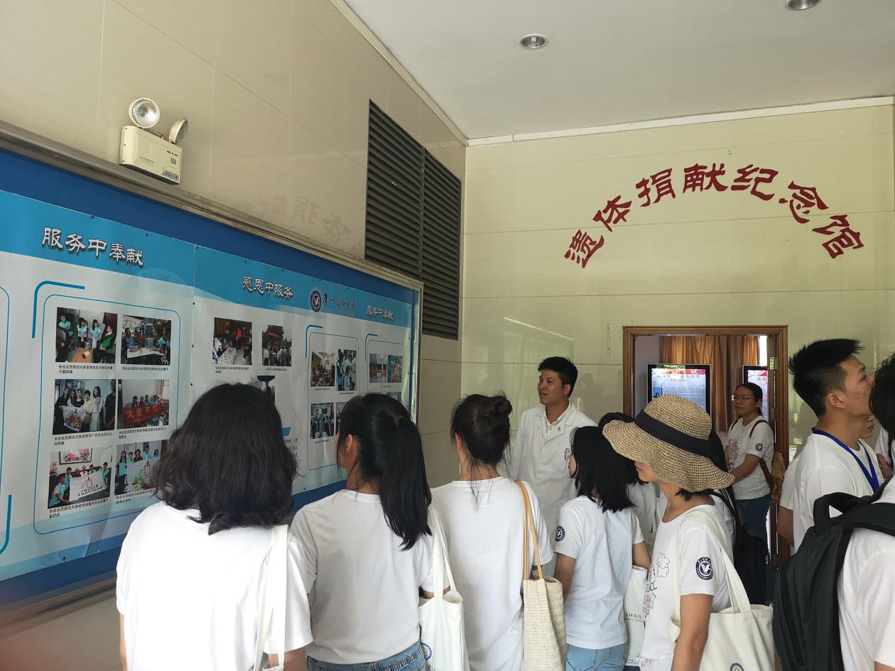 人体解剖学教研室组织了“庆祝第一个世界解剖日”主题活动,教研室宣爱国主任带领学生依次参观人体标本馆、遗体捐献纪念馆,并围绕教研室人文思政教育开展情况作介绍,引导同学们详细了解人体标本馆的科普内容、学校志愿遗体捐献活动的开展形式和意义、捐献站的发展历程等。