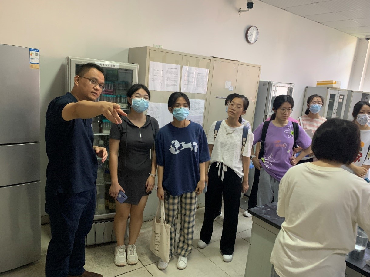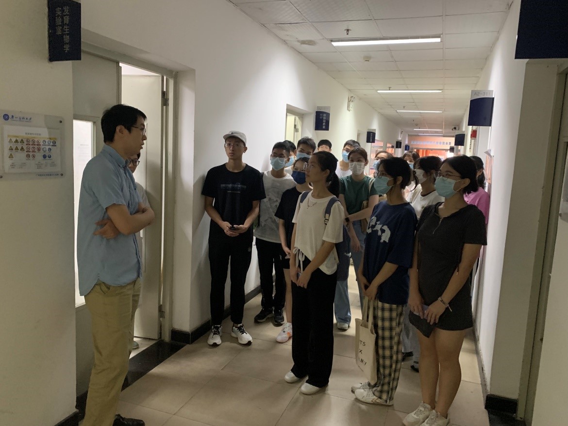 肿瘤学平台的刘铭教授介绍并带领同学们参观实验平台