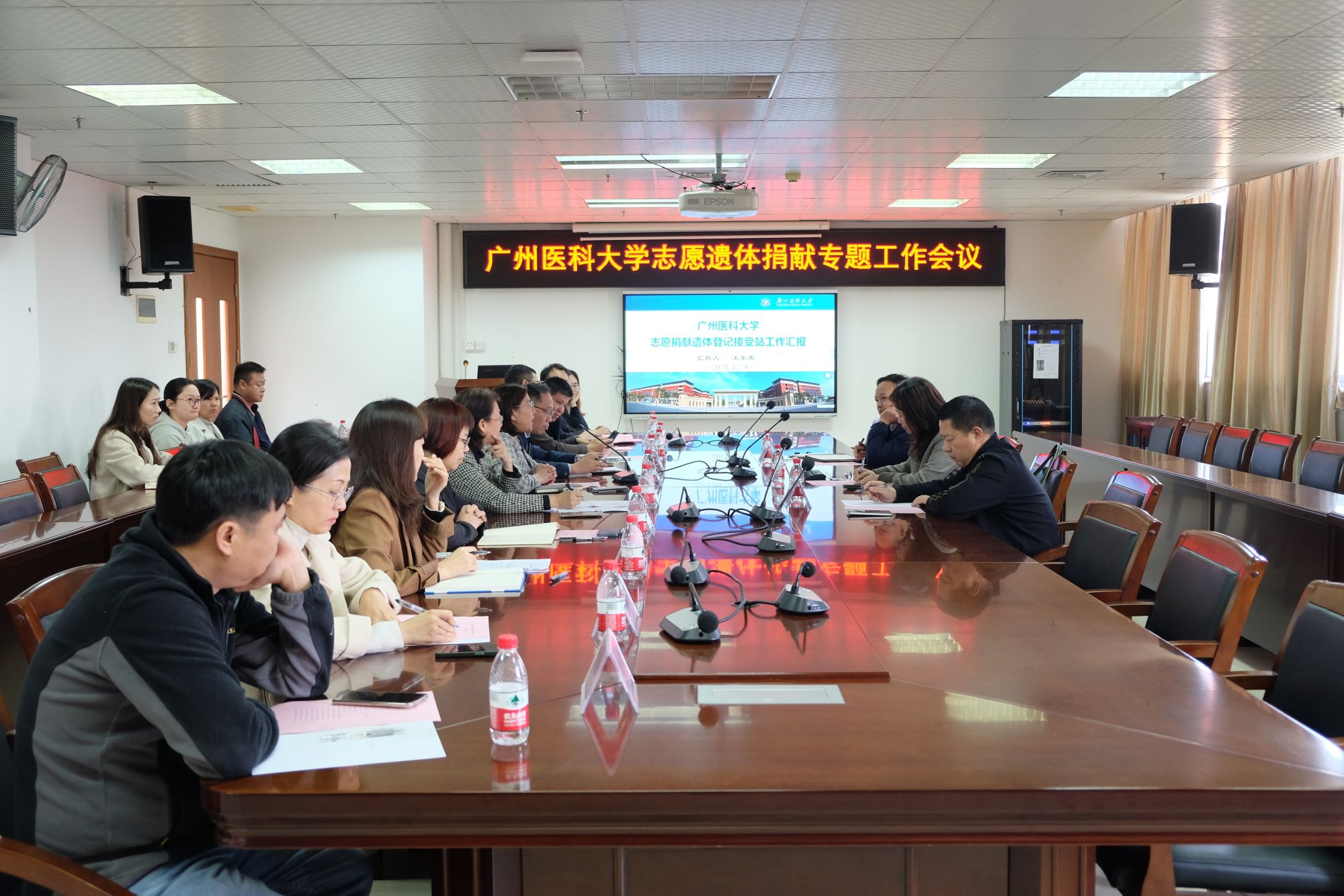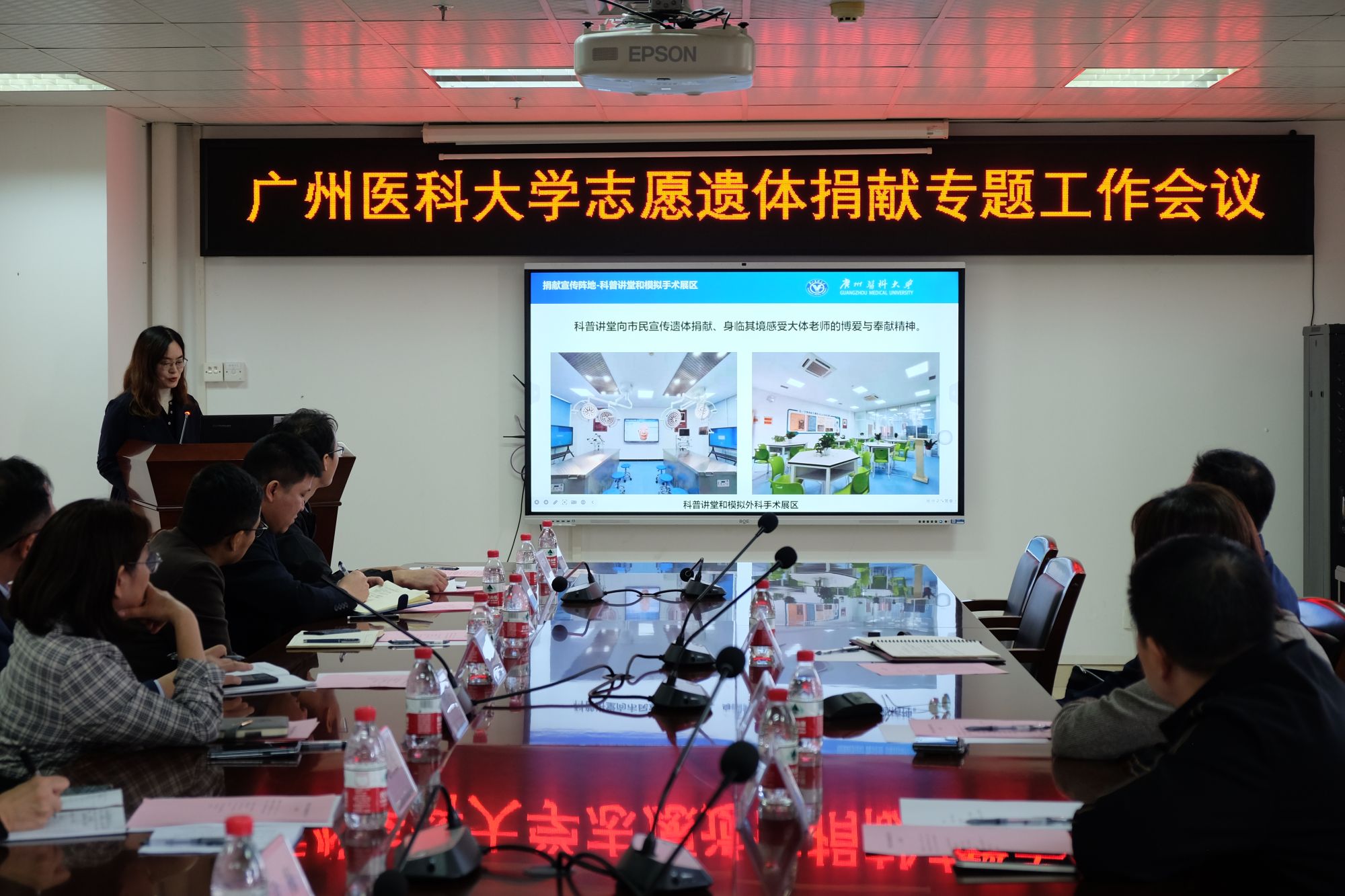 志愿遗体捐献专题工作会议在番禺校区博学楼召开,广州市红十字会党组书记、常务副会长张青蕾、副会长姜华、赈济救护部部长朱斌,成人卡通