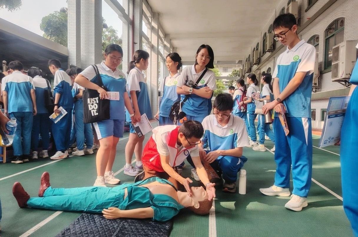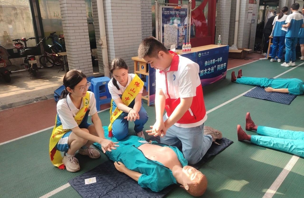 4月10日,在佛山市第一中学2025年“加木之光”科技节上,我院基础医学系副主任张根水教授带领由具备临床背景的研究生组成的科普团队,为该校师生开展CPR心肺复苏术急救培训。作为本次科技节的核心实践项目,活动旨在通过“理论+实训”双模块教学,系统教授心肺复苏操作流程及突发状况应对等关键技能,以有效提升中学生急救处置能力。