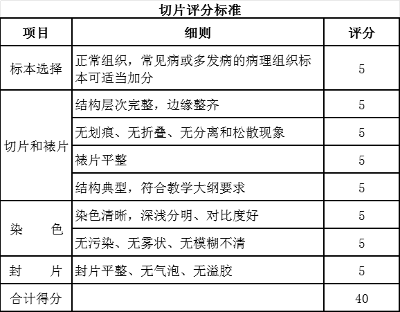第二环节:为切片评比环节,评委老师根据每组提交的切片标本进行综合评分(占总分的40%)。