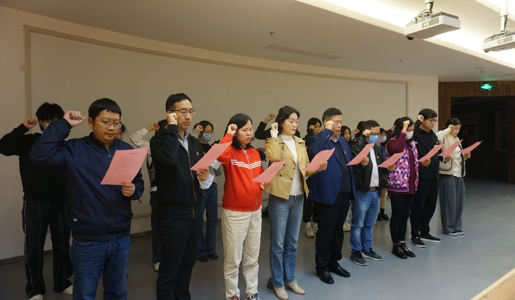 伴随着雄壮的《国际歌》响起,入党宣誓仪式正式开始。参加宣誓的党员同志们在龙书记的带领下,坚定地举起右手,面对党旗庄严宣誓,共同发出“为共产主奋斗终身”的铮铮誓言,表达了对党的忠诚和积极投身党的事业的决心!宣誓完毕,大家纷纷表示将铭记入党誓言,坚定理想信念,增强党性观念,发挥党员先锋模范带头作用,以实际行动彰显新时代共产党员风采。
