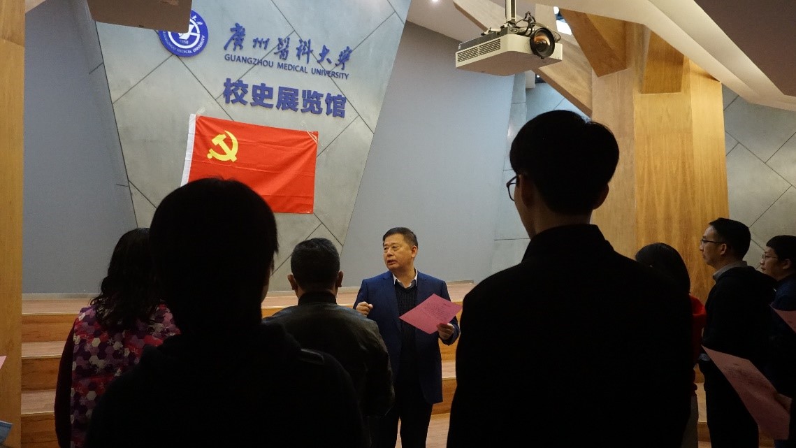 党总支组织15名新党员在校史馆举行集体入党宣誓仪式,并参观校史展览馆及抗非典纪念馆。仪式由党总支书记龙大宏主持,本年度新发展的预备党员和相应党支部书记共20人参加。