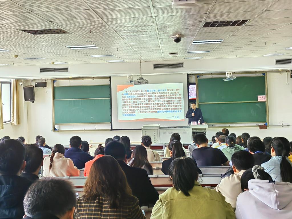 龚超教授以“过去五年的工作和新时代十年的伟大变革”为主题,围绕党的二十大报告第一部分内容,理论联系实际,综合运用案例阐释、数据剖析等方式,对党的二十大精神进行了深入解读。龚超教授的报告视野宏阔、主题鲜明、分析透彻、深入浅出,为我们深刻领会和准确把握党的二十大精神提供了有力指导。