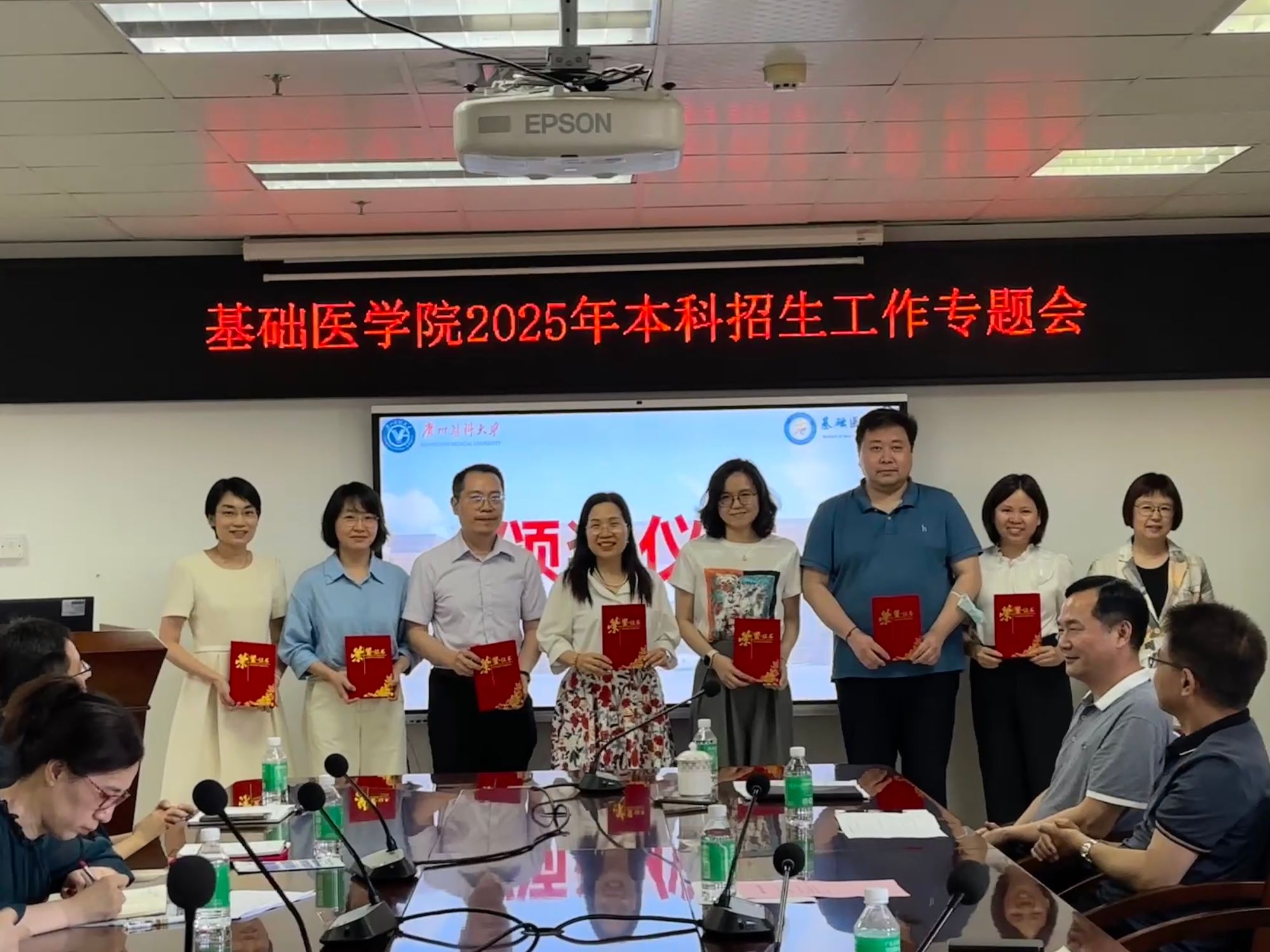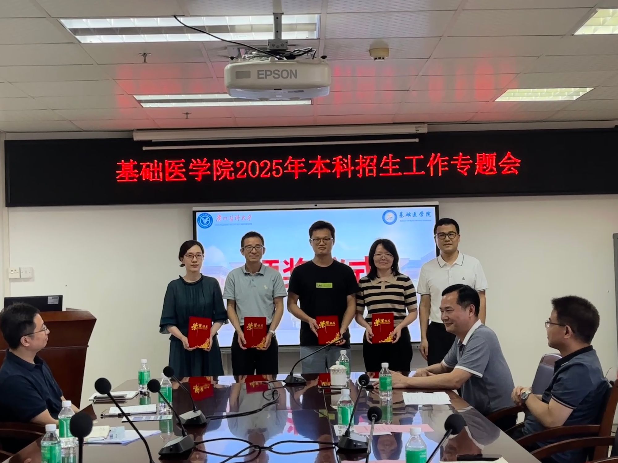 召开2025年本科招生工作专题会议。学院领导班子、各办公室主任、基础医学系主任及本科招生宣传教师团成员约40人参会,会议由学院党委书记尹梅主持。
