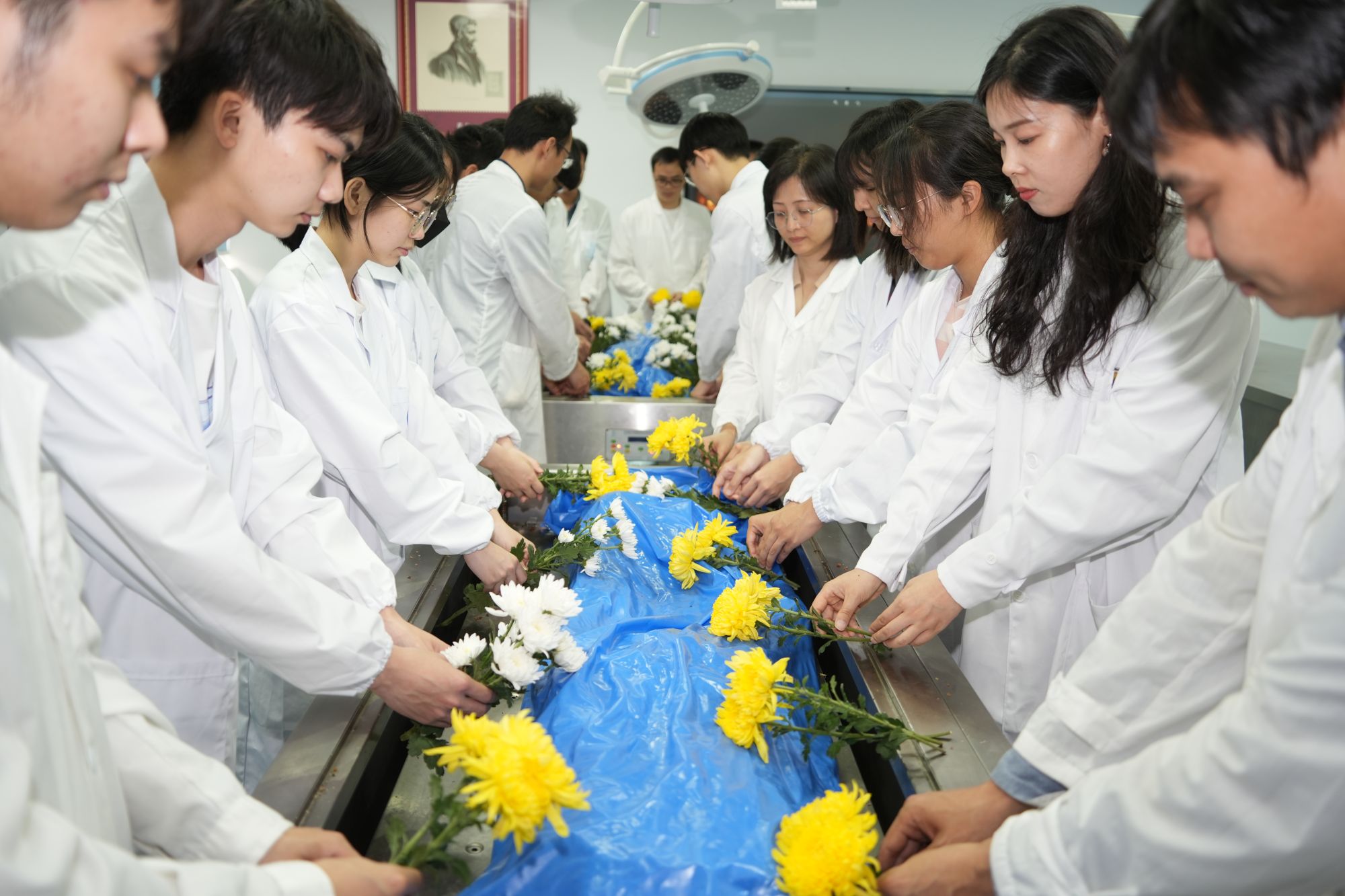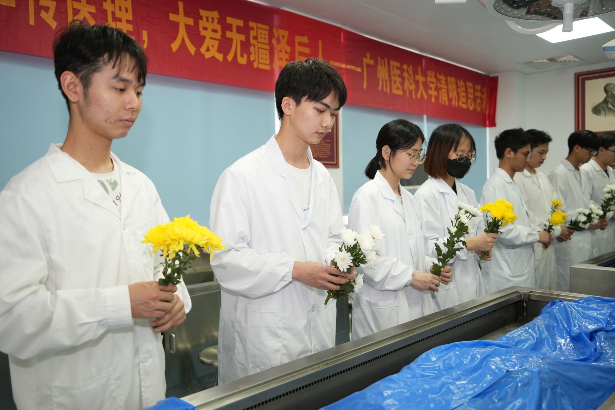 举办以“生命升华传医理,大爱无疆泽后人”为主题的清明追思活动,缅怀为医学事业无私奉献的“大体老师”--遗体捐献者。师生们手握雏菊,静默肃立,将敬意献给让生命发出最后一束光的“无言恩师”们。
