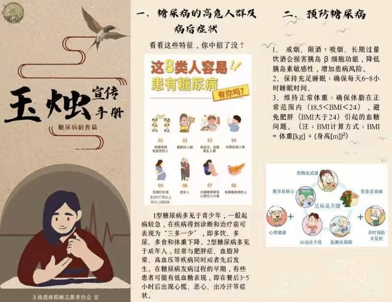 最后,每位来到摊位受到义诊服务的市民都拿到了来自玉烛遗体捐献志愿者协会的宣传手册,其中不仅有糖尿病相关知识的科普,也有有关遗体捐献的资讯。志愿者们为市民们科普了遗体捐献对于医学发展的重要意义、遗体捐献的流程,也对遗体捐献的条件作出阐述。宣讲过后志愿者们耐心地为市民们答疑解惑,使市民们的健康意识、防病意识有所提高,对遗体捐献的了解有所增加。