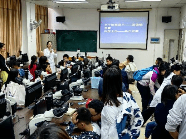 本次活动包括四个环节:人胚早期发育科普讲座、探究人体微观世界、认识人体标本和简易小实验观察细菌。