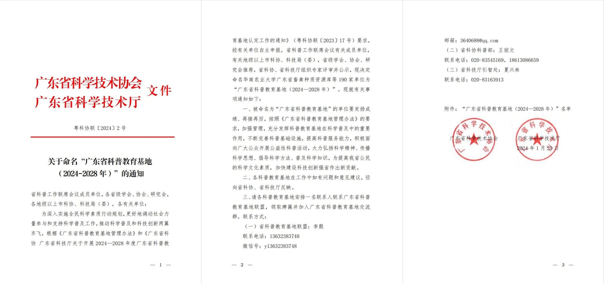 经学院、学校以及广州市科协推荐,省科协、省科技厅组织专家评审并公示,2024年1月23日,我院人体标本馆科普基地成功获评“广东省科普教育基地(2024-2028年)”。