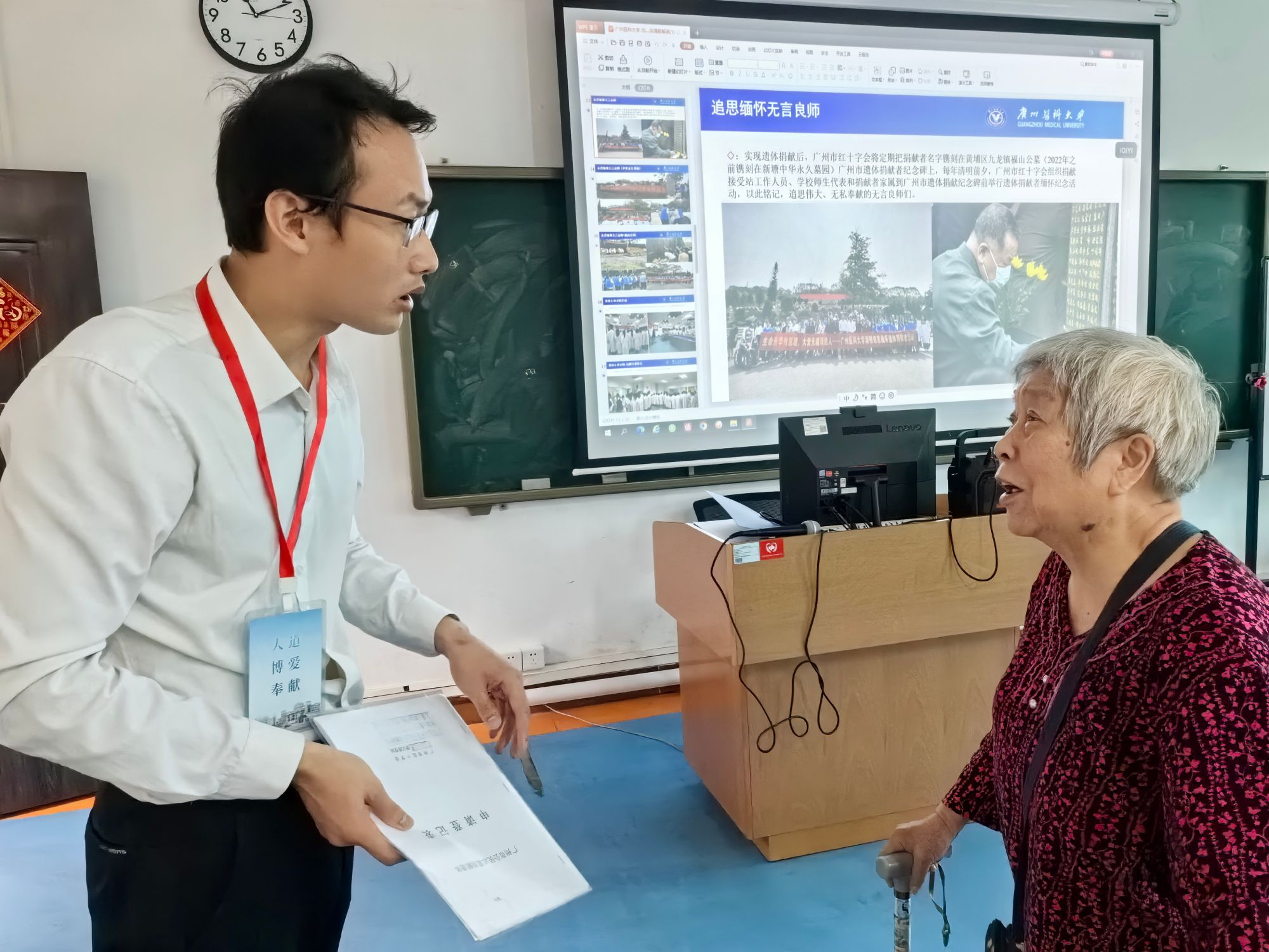 朱姨表示,自己目前是一位退休的医务工作者,愿意奉献自己的力量,发挥余热,助力遗体捐献公益事业和医学教育事业发展。同时,朱姨也反复强调要培养医学生心怀感恩、尊重捐献者的医学人文精神,不断刻苦钻研、埋头苦干,努力提高自身知识水平,为投入医学事业而奋斗。
