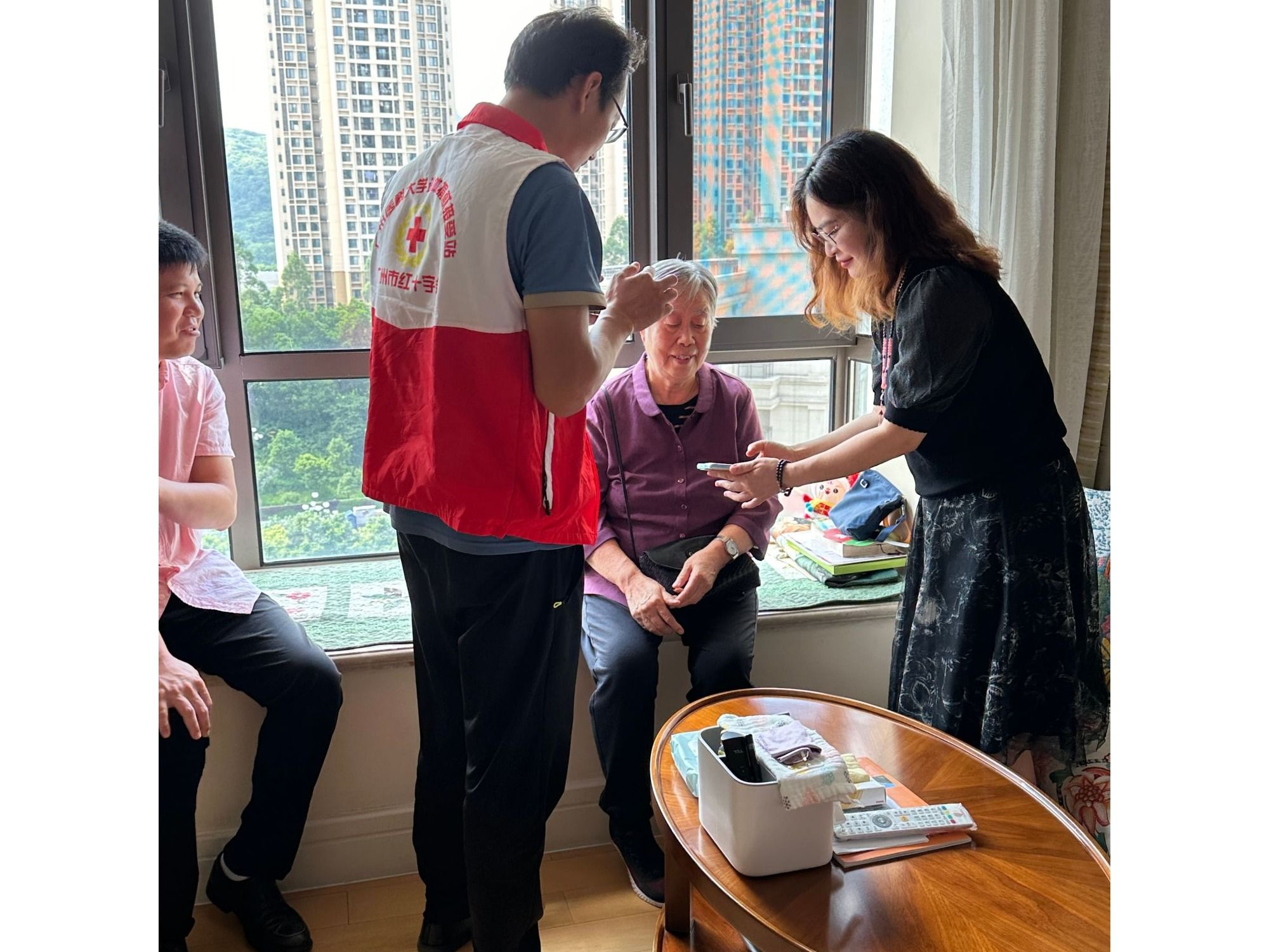 遗体捐献接受站老师及学生志愿者们通过开展义诊服务的方式,走进老人院,向长者们普及遗体捐献事业。