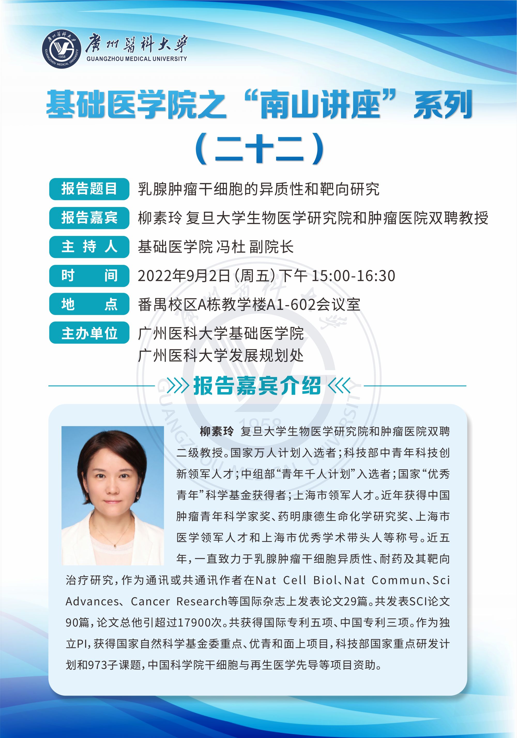 学术讲座--乳腺肿瘤干细胞的异质性和靶向研究
